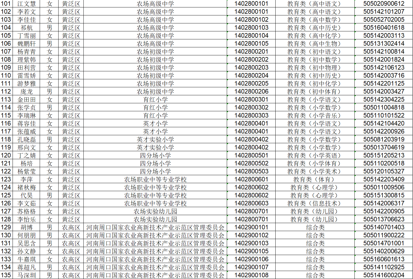 下图:2025年河南省(周口市)事业单位公开招聘联考第一批拟聘人员名单.xls