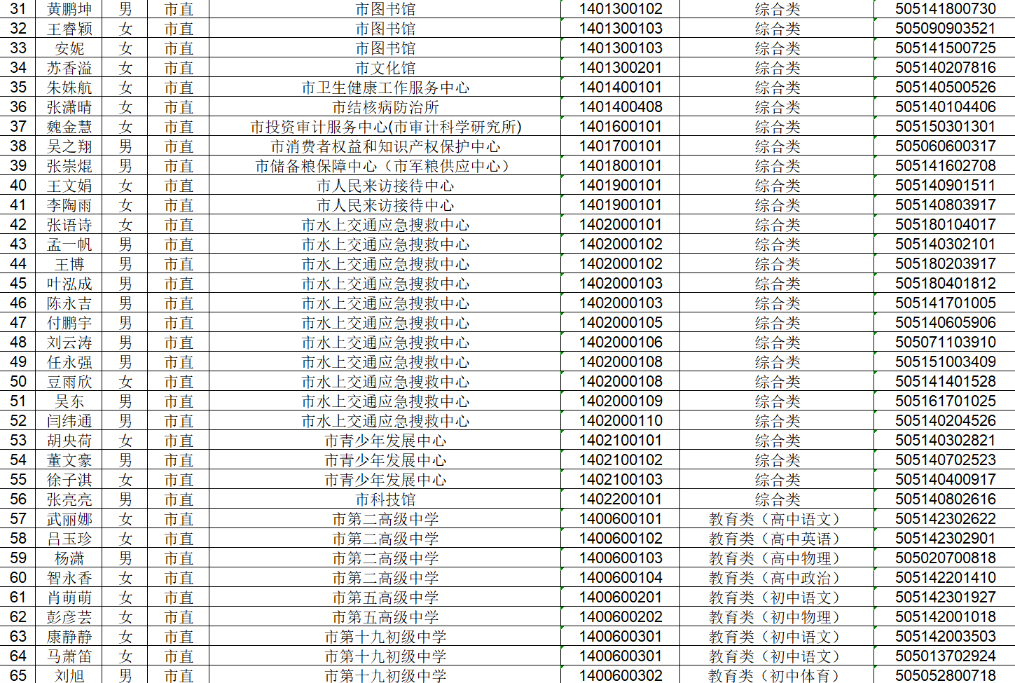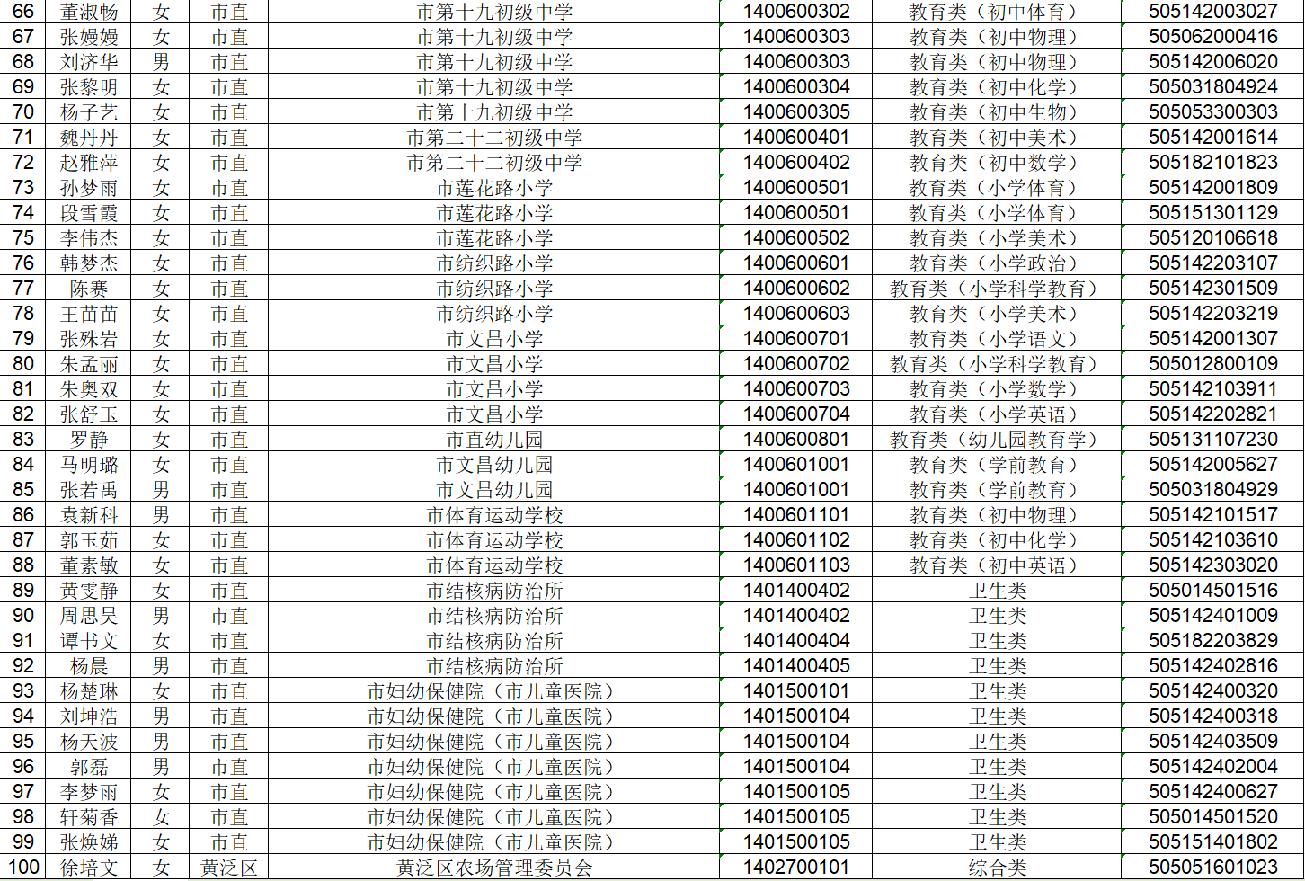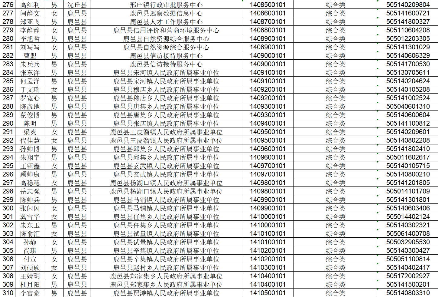 招聘联考第一批拟聘用人员公示